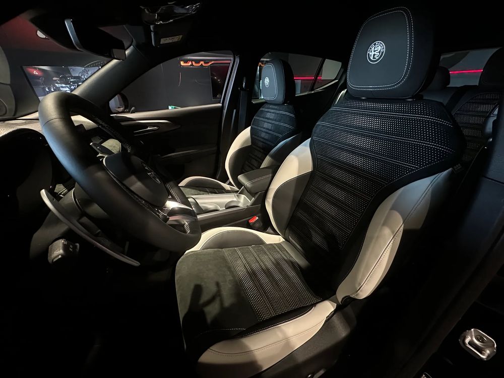 • Fotele z Alcantary i skóry technicznej, z perforacją, wstawkami i przeszyciami w kolorze białym